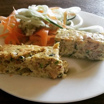 A delicious way to eat up extra zucchini. It makes a lot so you can freeze the excess for snacks or school lunches (if you can't take nuts you could try substituting with a sunflower seed meal).